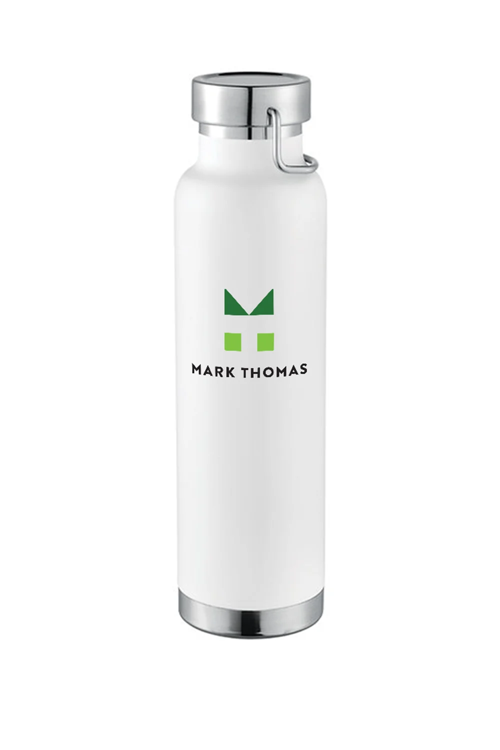 The 22oz Copper Vacuum Insulated Bottle features 18/8 stainless steel construction with a spill-resistant lid, a durable metal hand loop, and a wide opening for easy filling and ice cubes. Designed to fit most car cup holders, it measures 10.59″ H x 2.87″ W and weighs 14.72 oz, with digital inkjet decoration available.