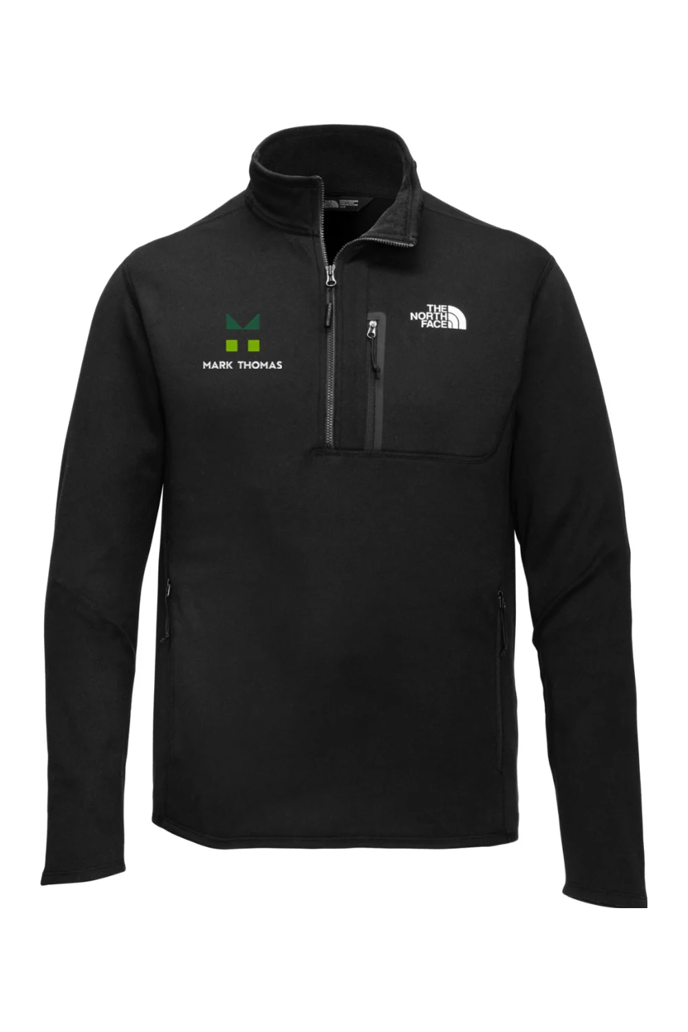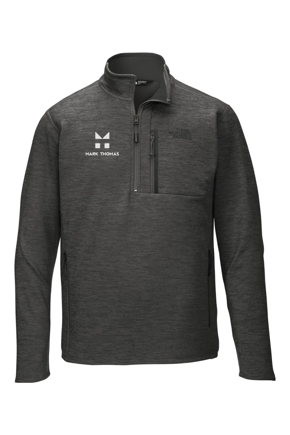Finished with The North Face logo on the left chest and the Mark Thomas logo embroidered on the right chest.