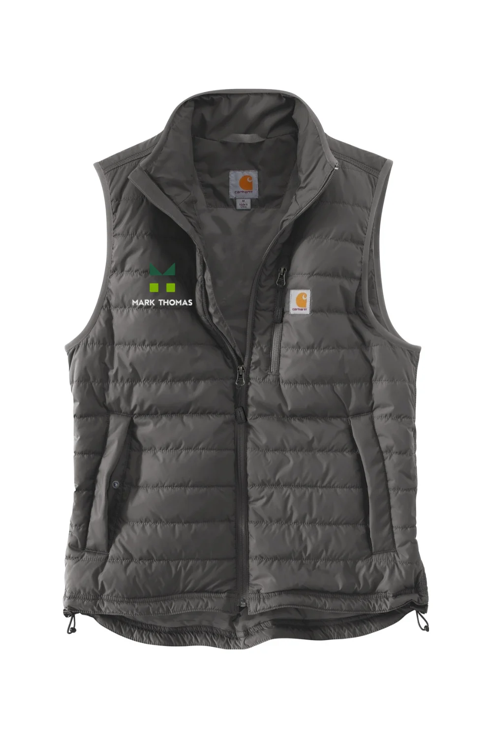 The Carhartt Insulated Vest is a lightweight, water-repellent layer perfect for core warmth. Made from a durable 1.75-ounce nylon Cordura® shell with Rain Defender® and Wind Fighter® technology, it features quilted nylon lining with 100-gram polyester insulation, a zip-through collar, multiple pockets, a drawcord-adjustable drop tail hem, and triple-stitched seams for durability. Relaxed fit with a signature Carhartt label on the chest pocket.