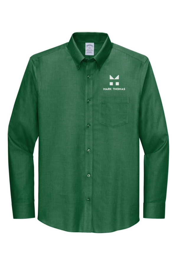 The Men’s Brooks Brothers Wrinkle-Free Stretch Nailhead Shirt offers a polished look with a subtle two-color pattern and soft feel. Made from a 4-ounce 95/5 cotton/spandex blend, it features a button-down collar, left chest pocket, taped seams, dyed-to-match Brooks Brothers logo buttons, and adjustable rounded cuffs, with a wrinkle-free finish for all-day style.