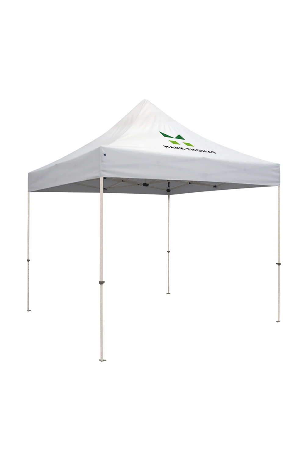 This versatile canopy kit, ideal for outdoor use, features full-color imprint on four locations for maximum branding impact. Constructed with a durable steel frame, ABS nylon hardware, and a 400-denier polyester flame-retardant canopy, it includes a soft rolling case and stake kit for convenience. Dimensions: 118.5″ W x 138.25″ H x 118.5″ D (collapsed: 8.37″ W x 62.75″ H x 8.37″ D), case dimensions: 12.5″ W x 64″ H x 15.5″ D, weight: 51.5 lbs.